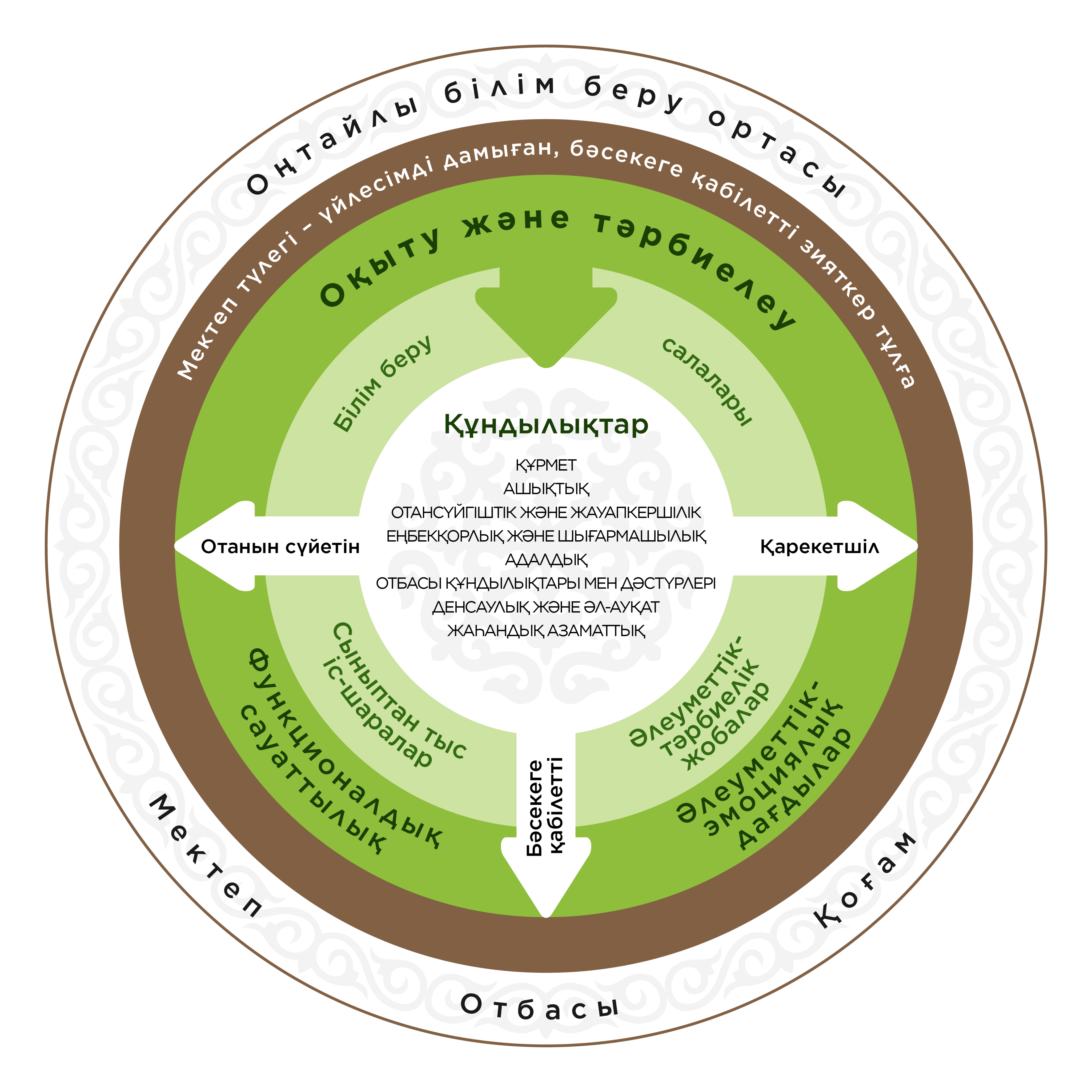 Барлық білім беру деңгейлері бойынша пәндерге арналған оқу бағдарламалары сабақтастық (спиральді тәсіл) және өзара үйлесімділік қағидаттарына негізделген. Осыған сәйкес әр оқу мақсаты сыныптан сыныпқа, бір білім беру деңгейінен келесісіне қарай біртіндеп дамып отырады.